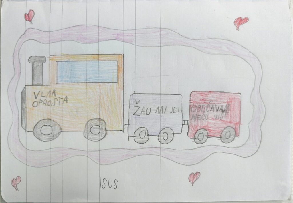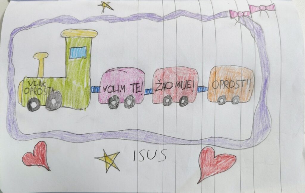 Na nastavi katoličkog vjeronauka u 1. razredu, pod vodstvom vjeroučitelja Hrvoja Zadravca, učenici su crtali „vlak oprosta“ i pružali „ruku pomirenja“ te pritom stvorili pregršt lijepih dječjih radova.