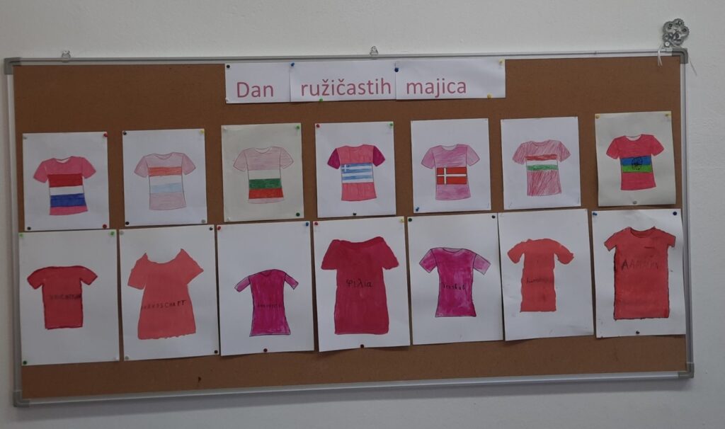 Učenici su izrađivali i tematske panoe, a učenici 4. c razreda zapisivali su riječ “prijateljstvo” na ružičaste majice, i to na različitim jezicima.