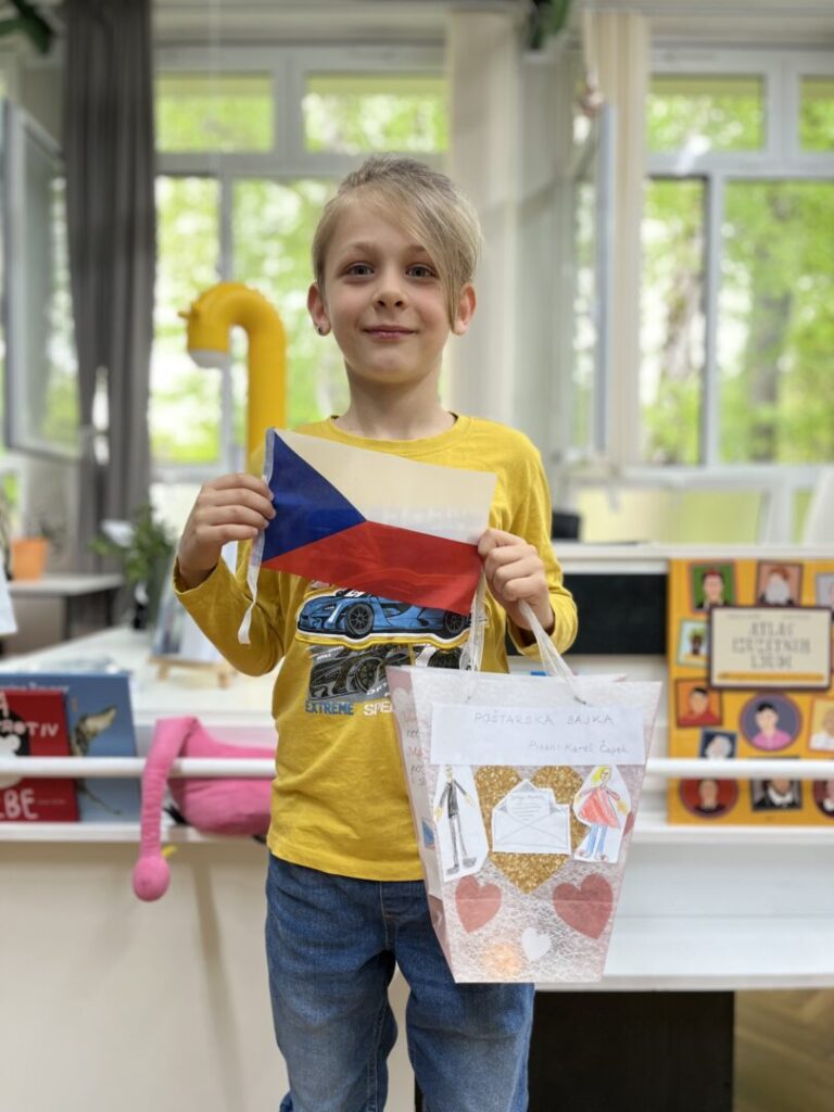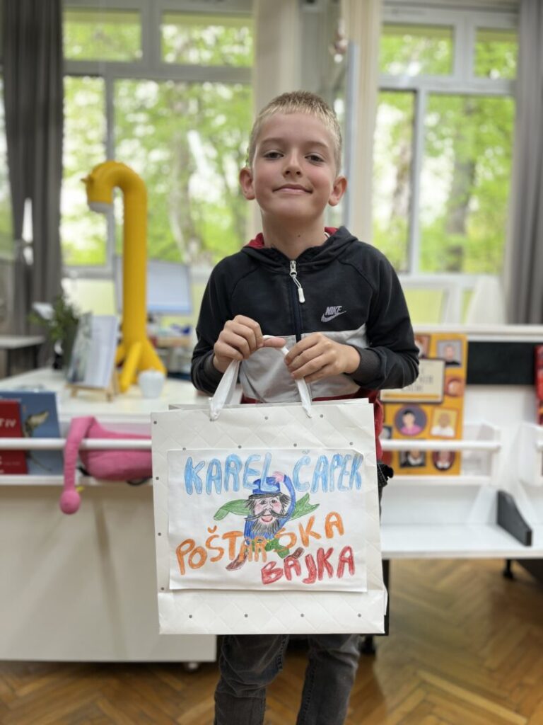 Naši učenici 2. b razreda danas su posjetili školsku knjižnicu sa željom da u njoj razgovaraju o pročitanoj lektiri Karela Čapeka „Poštarska bajka“.