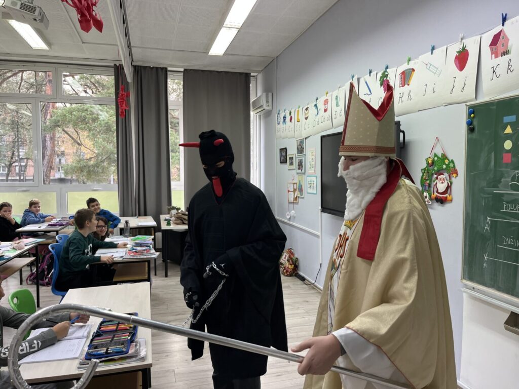 U petak, 5. prosinca, dan uoči blagdana sv. Nikole, našu školu posjetila su dva zanimljiva gosta – sveti Nikola glavom i bradom i njegov vjerni pratitelj Krampus.